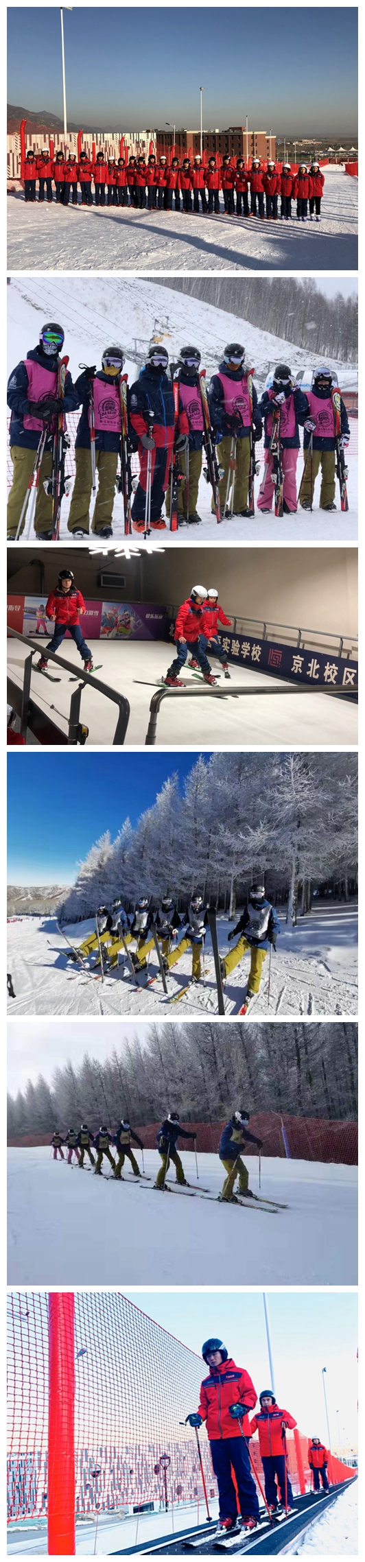 经过一周的训练课程,学生已基本掌握蹬坡技术、犁式制动、垂直运动、C字弯道步骤、犁式制动、犁式滑降、犁式J弯C弯S弯、犁式连续转弯、高级犁式转弯等动作,部分学生已在中级雪道进行训练。