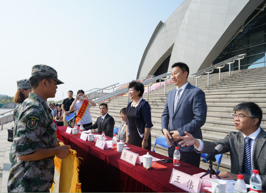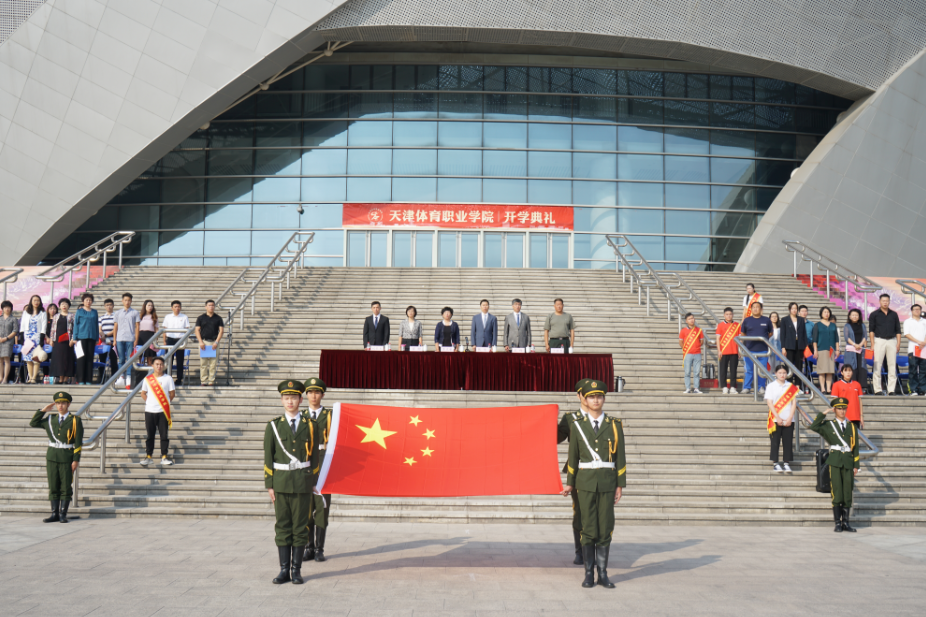 9月30日上午,体职院2019级新生开学典礼暨军训汇报表演汇演在团泊体育中心自行车馆前广场隆重举行。市体育局党委书记、局长李克敏,市体育局党委委员、副局长张欣,市体育局宣教法规处处长雷静,天津仪仗精英军事训练基地主任于祥杰及学院领导班子成员出席典礼,学院全体教职员工和2019级全体新生参加。典礼由院党委书记王伟主持。