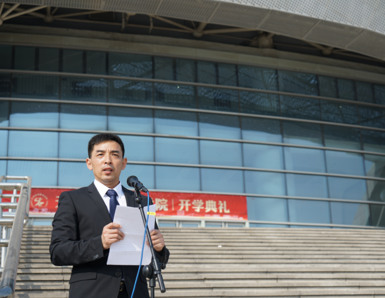 学院党委副书记、院长刘钦龙代表学院致辞,向2019级新生表示亲切问候,对新生承训教官及教师表示衷心感谢。刘钦龙在致辞中介绍了学院建院以来取得的成绩,结合时代背景和体育精神对新生提出三点希望:第一,要志存高远,勇做新时代的弄潮儿;第二,要明德精学,成为德才兼备的大学生;第三,要立身做人,做全面发展的时代骄子,他希望同学们在体职院的三年,奋发向上、知书达理、阳光积极,努力学习,用奋斗点亮青春,用拼搏抒写绚丽的新篇章。随后,教师代表刘娟、辅导员代表宋鑫鑫及2018级学生代表柳鹏飞、2019级新生代表阿拉帕提相继发言。
