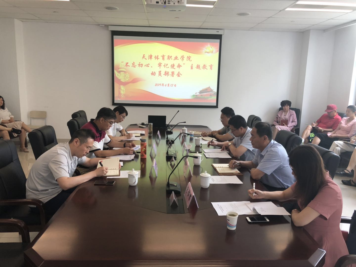 王伟指出,要把深入学习习近平新时代中国特色社会主义思想作为最突出的主线。落实到学习教育全过程,认真学习贯彻习近平总书记重要讲话精神和重要指示精神,锤炼忠诚干净担当的政治品格。要提高政治站位、强化政治担当,深刻领会开展主题教育的重大意义,严格落实局党委主题教育部署要求,以学习为基础,聚焦根本任务,结合当前学院改革创新和促进体育事业发展,精心组织实施,扎实开展好主题教育。坚持立德树人根本任务,强化育人,深化三教改革,推动学院内涵建设,以优异成绩迎接新中国成立70周年。