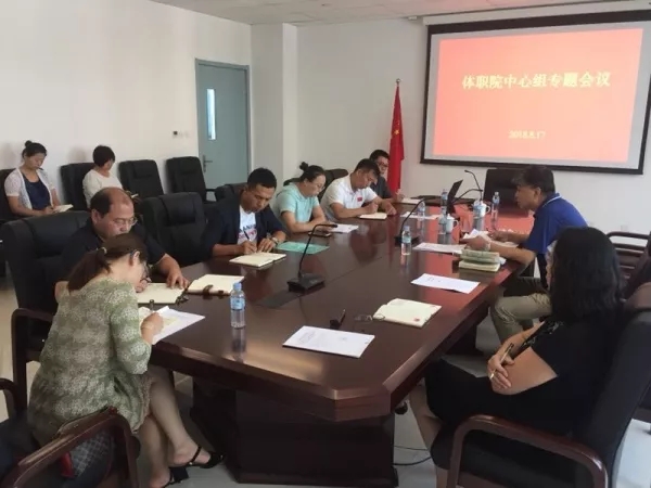 018年8月17日上午,体职院召开理论中心组扩大会,学院在校领导班子成员出席,各处室、系部负责人,各党支部书记参加。