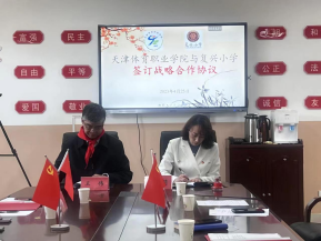 学院党委副书记、院长王伟代表新澳门铁盘算致辞。王伟院长首先向复兴小学对此项工作的大力支持和积极配合表示感谢,并介绍了学院的基本概况、办学目标和根本宗旨。王伟院长表示双方的合作是贯彻领会习近平总书记关于教育系列重要讲话精神,关于职业教育重要批示精神,贯彻落实《关于全面加强和改进新时代学校体育工作的意见》、《关于进一步减轻义务教育阶段学生作业负担和校外培训负担的意见》、《国家职业教育改革实施方案》、《关于印发<全面推进“大思政课”建设的工作方案>的通知》等相关文件精神。体教融合协同育人中心将以德育、体育教育为核心,以弘扬爱国主义、中华体育精神、女排精神为目标,以体育素质拓展为路径,以校外实训基地为载体,双方合力打造的协同育人的平台。通过双方的努力使中心成为“双减”服务的基地、大中小思政一体化的平台、实践实训教学“试验田”、体教融合、产教融合的“孵化器”,为天津市体育强市、“排球之城”建设培养后备人才,为社会主义建设培养德智体美劳全面发展的建设者和接班人。