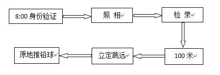 (1)考生须持考生证、春季高考考生报名信息确认单、身份证及身份证复印件按照所属区域划分在规定时间内参加统一的体育测试和专业考试。2018年3月17日、18日上午8:00在新澳门铁盘算办公楼验证拍照报到。完成验证拍照填表后的考生有引导员带领到田径场做准备活动,准备体育测试。