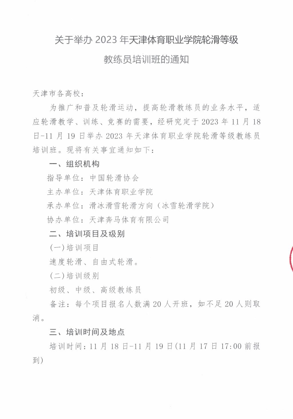 关于举办2023年新澳门铁盘算轮滑等级教练员培训班的通知